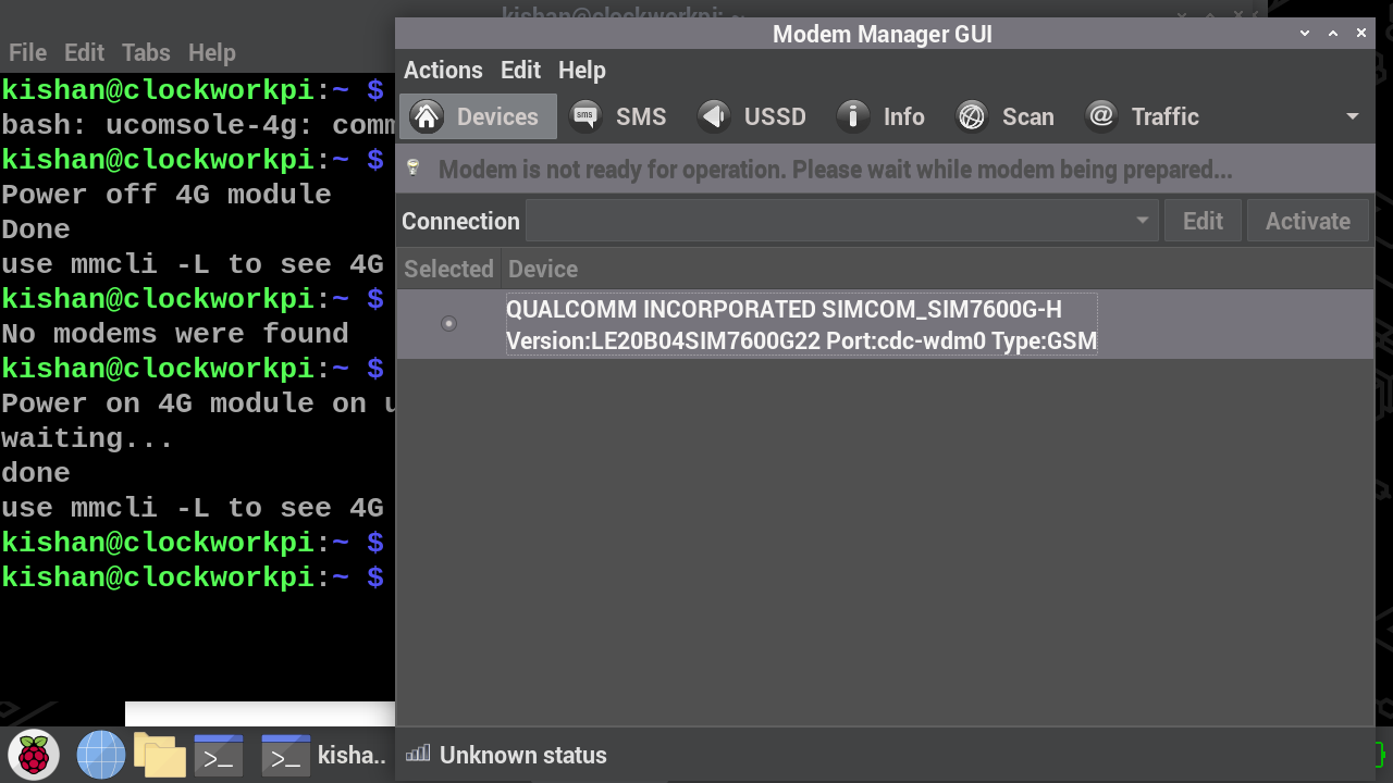 - When I launch the Modem Manager GUI, it says Modem not installed, please wait while activating… but the message never goes away, This could be because of #1 though