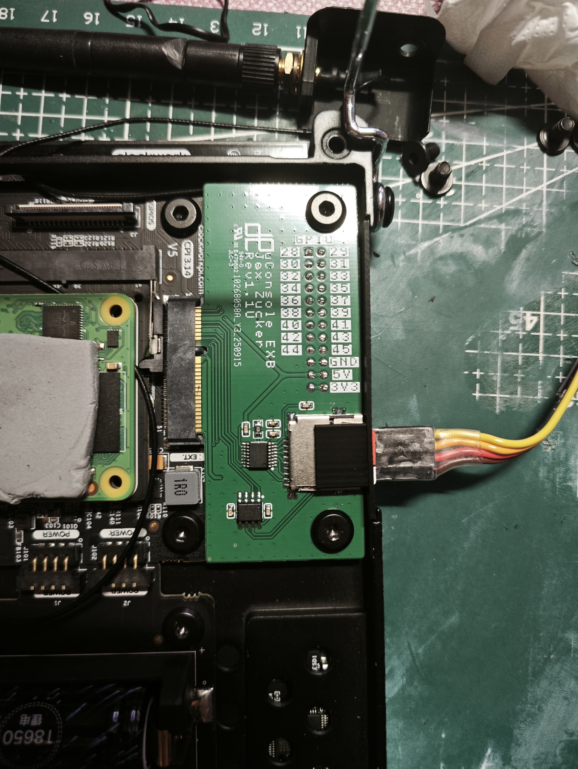 I designed a super basic expansion board for the uConsole, called the uEXB. It’s got just a microSD slot and an internal-facing USB port (you can solder or connect USB devices internally—like the NIC in the image). It also exposes all the GPIO pins from the PCIe interface. Check the pin mapping in the diagram or schematic!